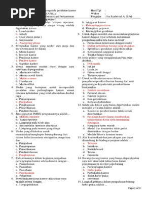 Soal Administrasi Perkantoran Dan Kunci Jawaban Guru Galeri from image.slidesharecdn.com Soal dan jawaban otomatisasi perkantoran dunia sekolah id cute766 : Program komputer yang merupakan program yang digunakan untuk pengolahan data berupa huruf adalah. Soal jawab smk kls 12 otk pekantoran : Soal materi otomotif smk dan kunci jawaban ta 2014/2015. Untuk mencetak semua halaman naskah maka pada menu print pilihannya adalah … a. Ini beberapa contoh soal kewirausahaan kelas 12 sma/ma/smk dan lengkap dengan kunci jawabannya: Salah satu kegiatan dalam administrasi kepegawaian negara menurut prof. Diketahui bahwa kantong p kosong, kantong q berisi 10 buah kelereng dan kantong r berisi 15 kelereng.